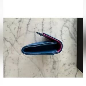 Beautiful deep Blue classic Chanel quilted leather with Fuchsia interior accent. This was an incredibly rare color combination that sold out instantly when released and is no longer available.