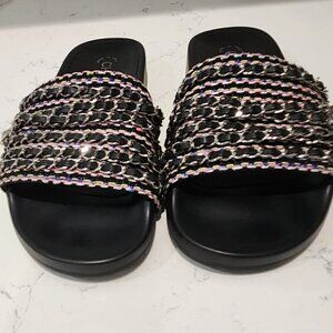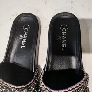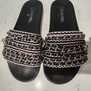 - Silver Tone Chain & Braided Leather Embellishment w/CC logo Charm