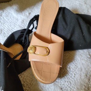 Chanel Leather and Wood Slides 38.5 Peach Color. SALE! $100 marked down