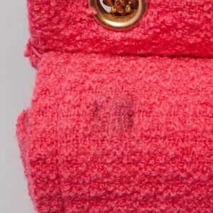 The exterior tweed fabric remains clean but has some rubbing throughout. The hardware is bright and shiny with minor scratches. The interior flap has some wear marks from the chain strap. The interior is clean and remains in great condition.