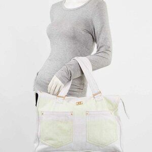 Chanel Light Pink/Yellow/Blue Printed Denim Large Shopping Tote Bag