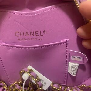 Chic Chanel mini bag in lilac. Features quilted design and iconic logo clasp. Perfect for stylish outings.