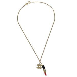 Chanel Lipstick Gold CC Pendant Necklace Rhinestone 04A 185040
