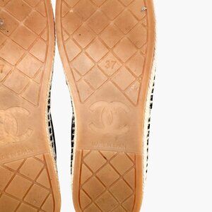 Chanel Logo Espadrilles EU 37 US 6-6.5 Black Velvet Rope Sole Slip On Flat Shoe