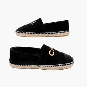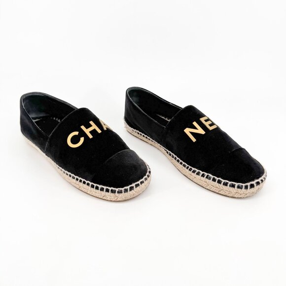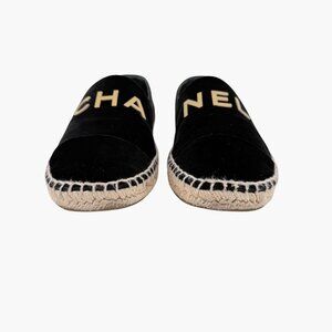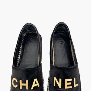 Chanel Logo Espadrilles in Black Velvet Size 37