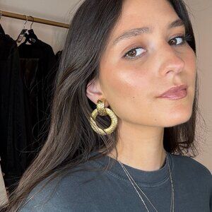 Chanel Vintage 1990s door knocker earrings. Clip-on. Chanel logo spelled out on hardware on both sides. The hoop can be taken off to be worn as more simple hoops. 24k gold plated.