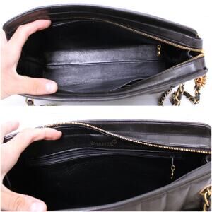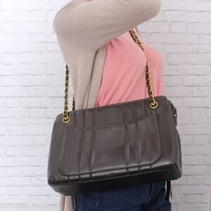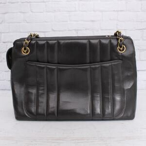 Chanel Mademoiselle Vertical Stitch Chain Tote Black Lambskin Shoulder A5072