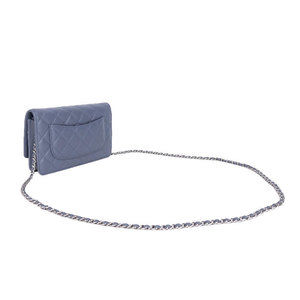 Chanel Matelasse Chain Wallet Silver Hardware Shoulder Bag Blue