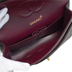 Chanel Shoulder Bag. Matelassé. Double Flap. Double Chain. Lambskin. Black. Gold Hardware Women's