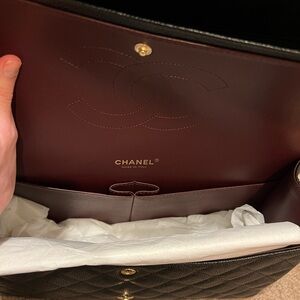 Very great condition, Chanel Maxi in black caviar with gold hdw! Includes dust bag, tag, store receipt, and authenticity card.