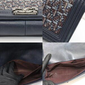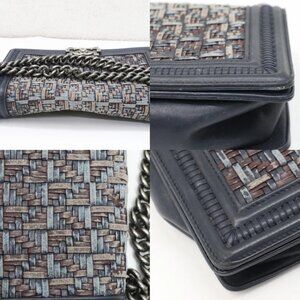 Chanel Medium Woven Boy Flap Bag Blue Dark Calf Leather Crossbody