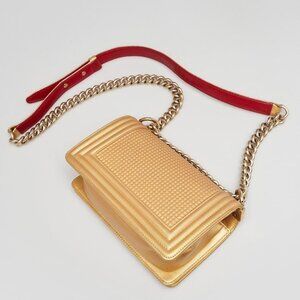 Chanel Metallic Gold Cube Embossed Lambskin Leather Small Boy Bag