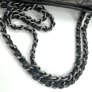 Chanel Metallic Silver Dark Gray Grey Quilted Caviar Timeless Tote