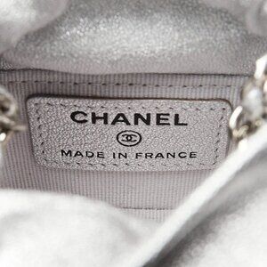 Chanel Metallic Silver Quilted Leather Mini Drawstring CC Bucket Bag