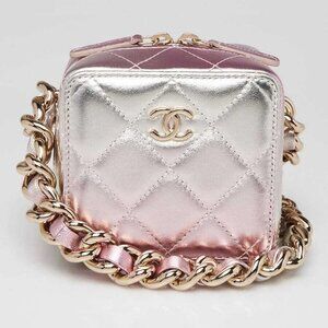 Chanel Metallic Silver/Pink Gradient Quilted Lambskin Leather Coco Punk Cube Bag