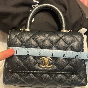 This is a caviar leather Chanel Mini Coco in almost new condition. Hardware is a light gold - Used a couple times and is to small for me. This bag is a chip bag. Please ask all questions and I will not respond to crazy offers.