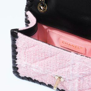 Chanel Mini Flap BARBIE Bag Pink Tweed Black Braided Leather Calfskin Gold Chain