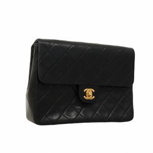 Chanel Mini Matelasse Shoulder Bag Black Lambskin Gold Hardware Pre-owned Women'