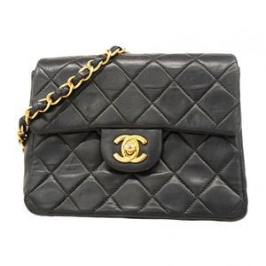 Chanel Mini Matelasse Shoulder Bag Navy Lambskin Gold Hardware Pre-owned Women's