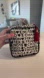 This beautiful cosmetic case measures approximately 6 1/2 inches wide by 6 1/2 inches tall by 3 inches deep. Has one pocket inside which opens to a zippered case. The color is light ivory with black bold Paris Chanel.Rue Cambon Coco lettering