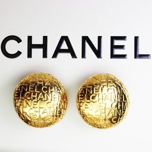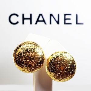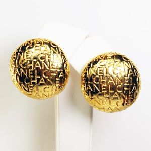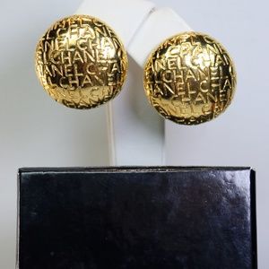 These gorgeous earrings feature CHANEL typeface on dome shaped button earrings with perfectly functional clipon mechanisms. They are in mint condition, measure approximately 1.15” in diameter, are extremely rare and highly collectible.