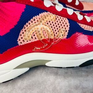 Authentic Chanel Multicolor Patent Low Top CC Trainers Pink Blue 38 IT