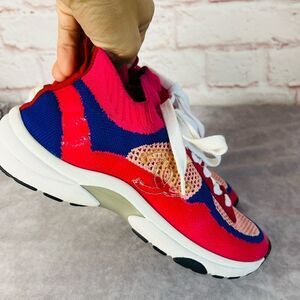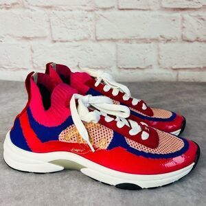 Authentic Chanel Multicolor Patent Low Top CC Trainers Pink Blue 38 IT