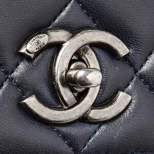 Chanel Navy Blue Quilted Lambskin Leather Large Trendy Bag