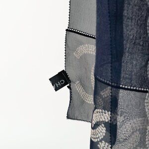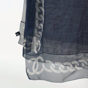 Chanel Navy Gauze & Chiffon CC Chainlink-Border Scarf