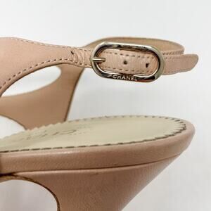 Chanel Neutral Strappy Pearl Detail CC Logo High Heel Sandals size 38.5 US7.5