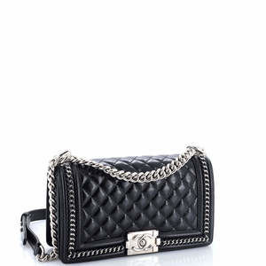 Chanel Old Medium Chained Boy Flap Bag Quilted Glazed Calfskin