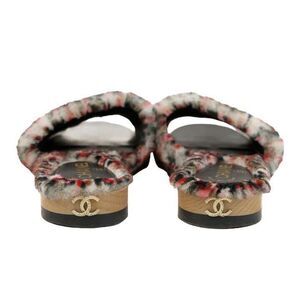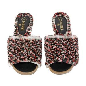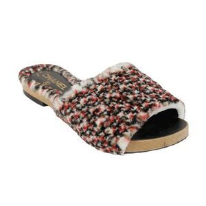 Chanel Orylag Fur and Lambskin Tweed Print Mules Size 40