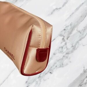 Chanel Parfums Cosmetic Bag Travel Makeup Pouch Cream Beige Peach