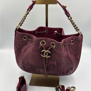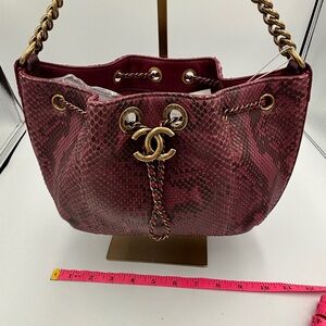 Chanel Paris Rome Drawstring CC Bag Red Python Gabrielle with FULL Inclusion