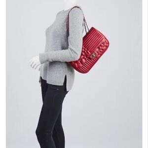 Elegant red quilted shoulder bag with a stylish chain strap. Perfect for adding a touch of sophistication to any outfit.