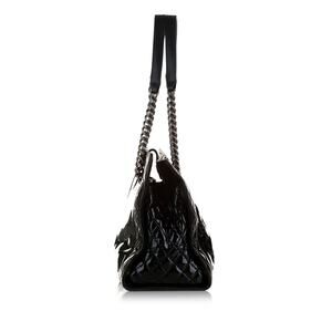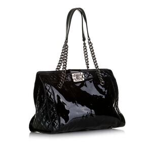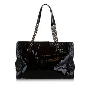This tote bag features a patent leather body, curb chain shoulder straps, an open top with push lock closure, and interior zip and slip pockets. Product Condition Details: Exterior Back Discolored, Scratched. Exterior Bottom Scratched, Worn. Embellishment Scratched. Exterior Front Discolored, Scratched. Exterior Handle Scratched, Worn. Interior Pocket Worn. Interior Lining Worn. Practical Attachment Scratched. Exterior Side Worn. Exterior Top Scratched. Inclusions: None, No longer comes with original accessories. Country of Origin: ITALY. Serial Number: 18650604