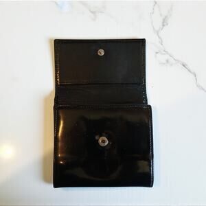 This stylish Chanel wallet is crafted from luxurious black patent leather, offering a sleek and sophisticated look. The trifold design provides ample space for cards, cash, and coins, while remaining compact enough to easily fit in your handbag or pocket.