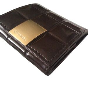 Chanel bi-fold dark brown patent leather chocolate bar coin purse.