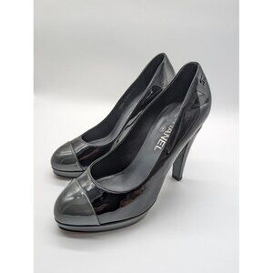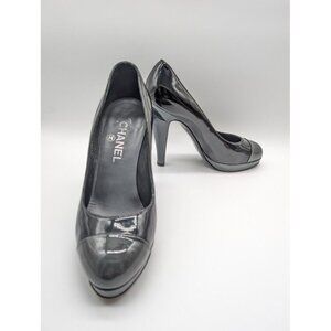 Chanel Patent Leather Platform High Heel Pumps Size US 8 EU 38.5 Black Box Dust
