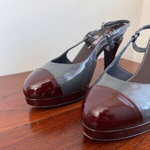 Chanel Patent Leather Slingback Platform Heels - 37.5