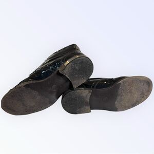 Noted Wear: Patent leather contains spots / marks throughout. Metal toe loose on right boot, interior soles have wear, bottom soles have wear.