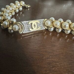Elevate your style with this authentic Chanel bracelet featuring the brand's signature interlocking CC logo. Expertly crafted in gold and adorned with dazzling pearls, this bracelet exude luxury and sophistication. With a modest yet striking size of approximately 9” inches long, its the perfect accent for any ensemble. This stunning pieces is in excellent condition, ready to complement your look. Don't just take our word for it - we encourage you to examine the detailed photos we've provided to fully appreciate the beauty and quality. Thank you for considering this exquisite addition to your jewelry collection. Original Box is not included.