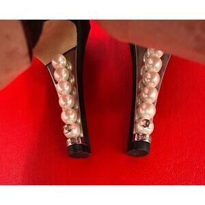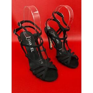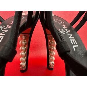 Chanel Pearl Heels Logo Black Grosgrain Sandals With Extras Please Read 36 1/2