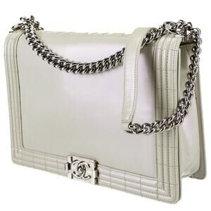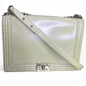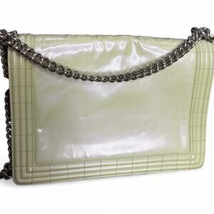 Chanel Pearl Iridescent Glazed Patent Leather Large Reverso Boy Flap Bag