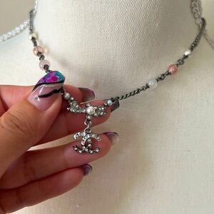 Ruthenium-Plated with rhinestones, faux pearls and bead