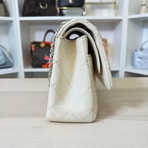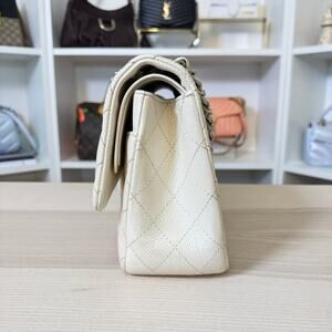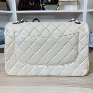 Chanel Pearly Caviar Quilted Jumbo Double Flap Dark White