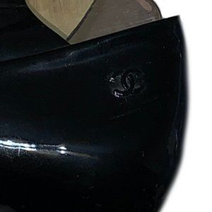 Chanel Peep Toe Ballet Flats Patent Black Size 8.5