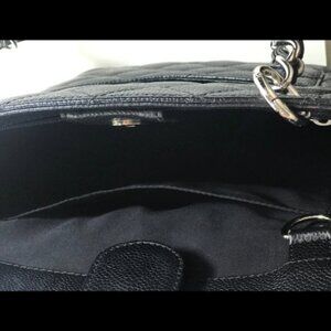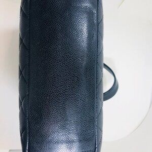 Chanel quilted caviar leather tote bag with silver chain and large CC on front.