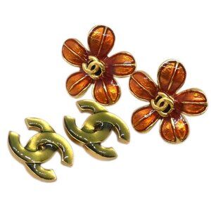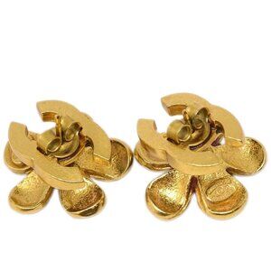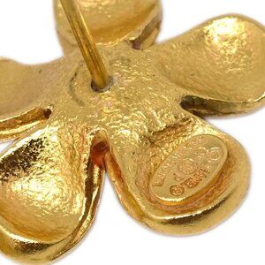 Chanel Piercing Earrings Gold Brown Flower 03P