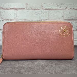 Chanel Pink Camelia Zippy Leather Long Wallet